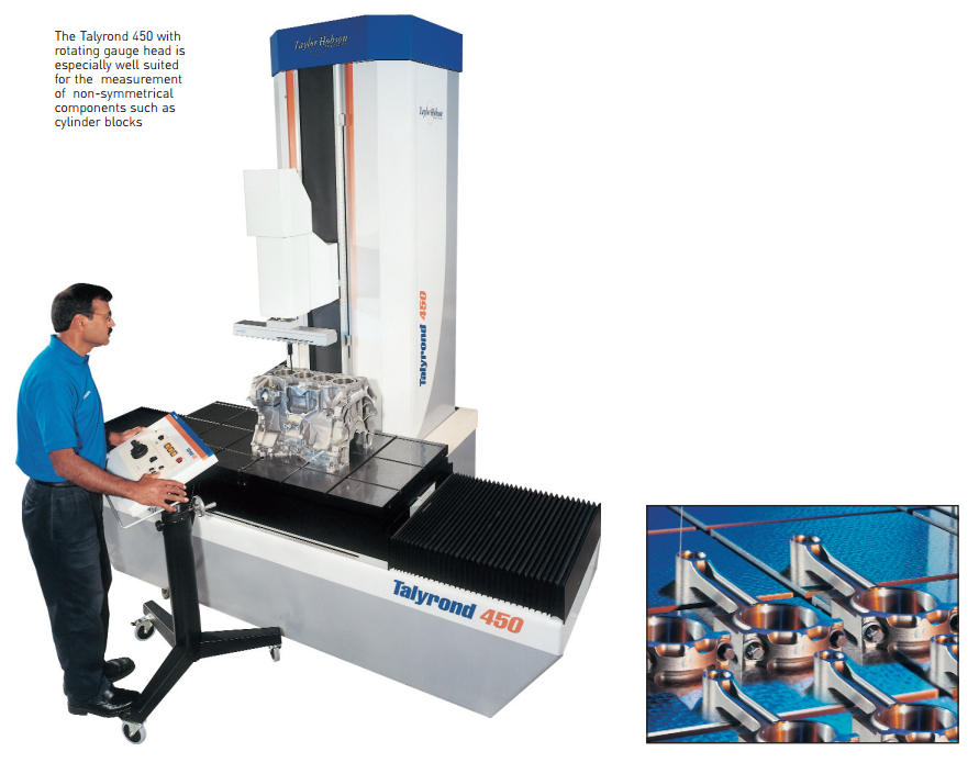This series of instruments is designed for the power transmission industry and the machine tool industry. The instrument includes a rotating measuring head that can be moved up and down on the column. The use of a rotating measuring head allows the manufacturer to measure the roundness of prismatic or non-rotationally symmetrical parts such as cylinder blocks, crankshafts and cylinder heads.