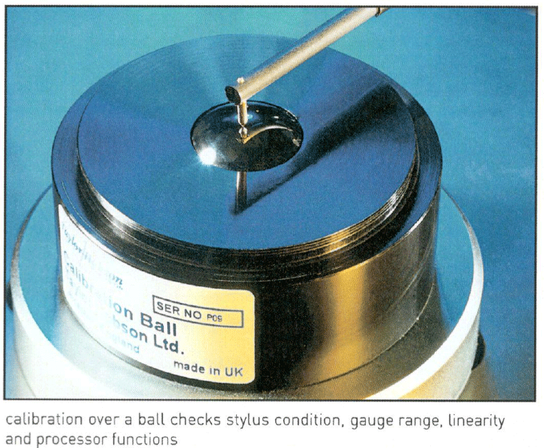 Stylus condition With many surface measuring systems, the size, shape and condition of the stylus tip are assumed to be constant in terms of data processing. In practice the stylus tip may vary due to manufacturing tolerance, routine wear or physical damage. During calibration with a Form Talysurf, the stylus is traversed over the spherical artifact to make contact at all points along the radius of the conisphere tip in the measurement direction. By this method, the user can detect effects due to stylus damage or deviations of size and shape. |