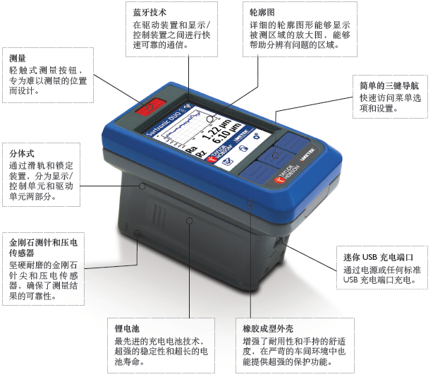 ● 金剛石測(cè)針和壓電傳感器 - 帶金剛石尖端的堅(jiān)固耐磨的壓電傳感器測(cè)針,確保測(cè)量結(jié)果的可靠性;
