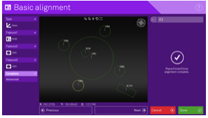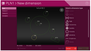 新的PC-DMIS TOUCH軟件通過指導(dǎo)性的工作流程安全地指導(dǎo)測(cè)量過程。 在全屏模式下,將顯示該過程的各個(gè)步驟,以使其以特別的顏色突出。 測(cè)量元件的圖形顯示在軟件界面的中央部分。 屏幕底部的圖標(biāo)使您可以快速切換到PC-DMIS TOUCH的其他功能區(qū)域。 |