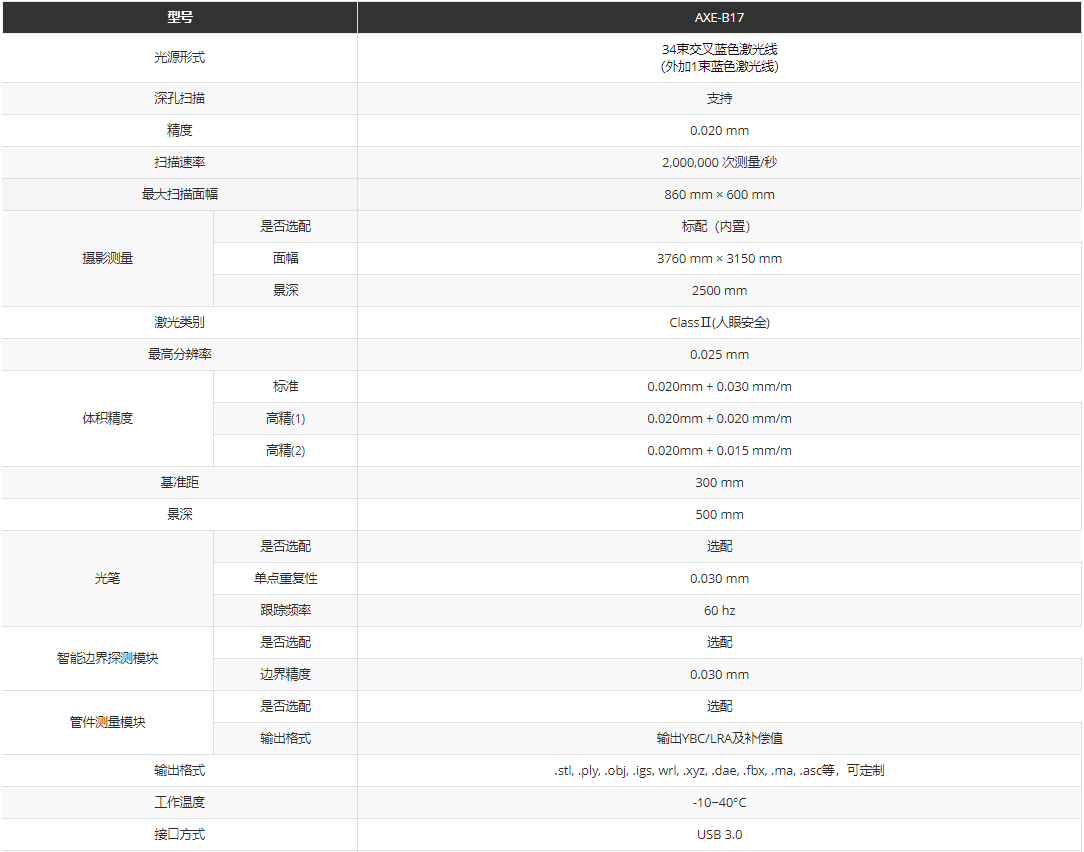 AXE-B17全局式三維掃描儀采用光學(xué)測(cè)量技術(shù),測(cè)量速度2,000,000次/秒,快速獲取物體三維數(shù)據(jù),精準(zhǔn)得出幾何曲面上的偏差值。