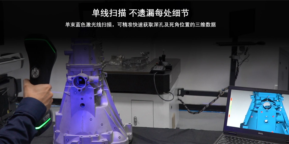 單線掃描 不遺漏每處細節(jié) 單束藍色激光線掃描,可精準快速獲取深孔及死角位置的三維數(shù)據(jù) |