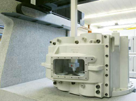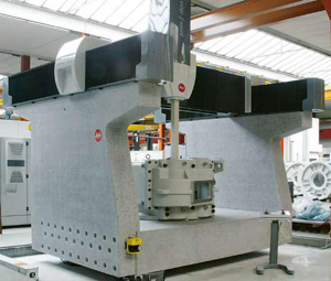 測量機的外形尺寸:長度4.5米,寬度4.36米,高度5.09米,提供了測量行程范圍達到3000 x 2000 x 1600 mm。整機重量達到28噸,澆灌了一個特殊地基,提供了穩(wěn)固的、無振動的基礎。U型機身采用灰色花崗巖,吸水性很小,為整個測量結(jié)果提供了整體的穩(wěn)定性。