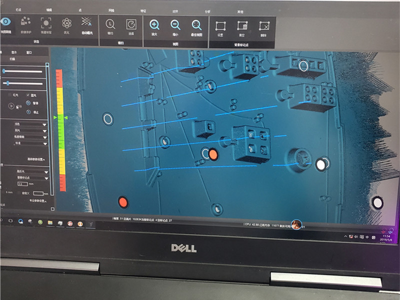 2. KSCAN藍光模式對鋁壓件正反面進行精細三維掃描,工作站實時顯示掃描結(jié)果;