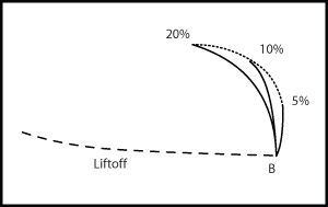 圖2中,我們(通過(guò)相位控制方式)轉(zhuǎn)動(dòng)了一下視圖,將提離信號(hào)變?yōu)樗椒较?,并增加了儀器的增益,目的是只讓矩形框中的區(qū)域占滿儀器的屏幕。如果厚度曲線上的點(diǎn)C位置代表20%的厚度減縮,則當(dāng)探頭移動(dòng)到腐蝕區(qū)域時(shí),圖中的點(diǎn)就會(huì)從點(diǎn)B位置移動(dòng)到點(diǎn)C位置。 |